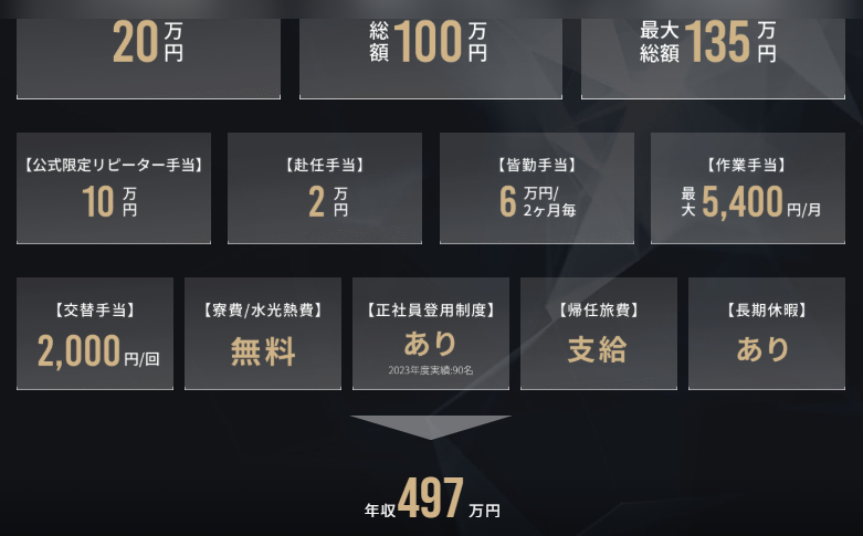 - 高収入モデル: 月収目安は32〜37万円と非常に高水準。