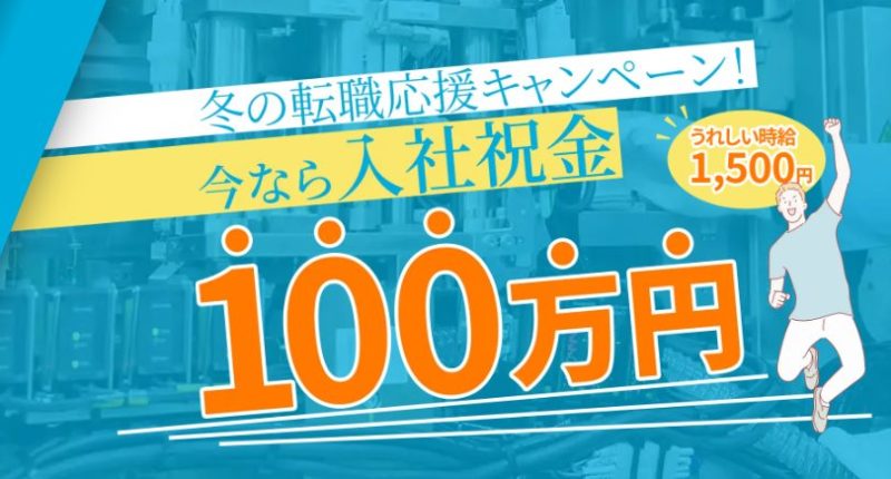 では、早速ですが、今もなおアイシンでは期間限定で入社祝い金が100万に増額中です(変動や条件あり)