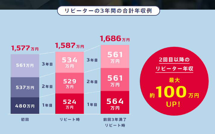 月収32〜37万円クラスが早く実現し、3年間で初回比+100万円以上お得になるケースも。